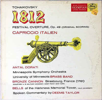 聞くところによると、この録音はLP時代に世界中で200万枚売れたそうです。おそらくは、世界中のオーディオマニアが買ったのでしょう。友人を家に招いて、自慢のシステムでこのLPを再生して悦に入っている顔がうかんでくるようです。陸軍士官学校のカノン砲がぶっ放され、72個の鐘が壮大に鳴り響くというのがこの録音の売りなのですが、確かにその迫力たるや尋常のものではありません。正直言って、カノン砲の砲撃が始まると、スピーカーが壊れはしないだろうか・・・という不安がよぎるほどの迫力です。