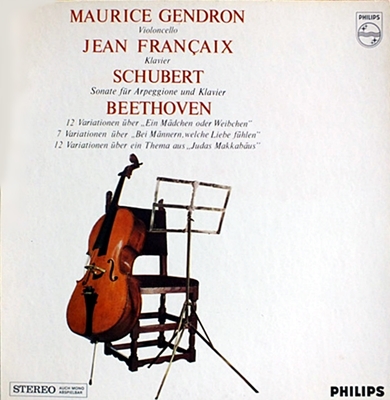 モーリス・ジャンドロンと言えばフランス・チェロ界の至宝であり、その洗練された表現とふくよかで美しい音色で聴き手を魅了する・・・などと言われます。そして、その延長線上でこのシューベルトのアルペジオーネ・ソナタに対しても、その流麗な歌わせ方を褒める人が多いようです。確かに、それは否定しません。