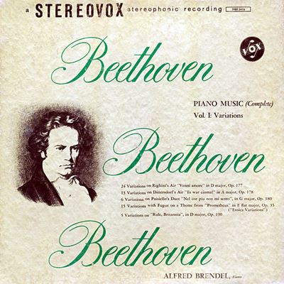 この一連の変奏曲はアメリカの新興レーベルである「Vox」で録音されたものです。調べてみると、ブレンデルの若い頃の録音の大部分はこの「Vox」で行われています。そして、この一連の変奏曲の録音の後に、ブレンデルはこのレーベルでピアノソナタを次々と録音していきます。
